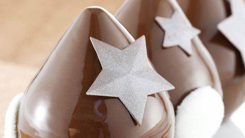 Mixer, réserver au froid 24h. Glacer l’entremets et ajouter les pastilles de chocolat. |
