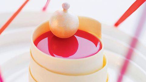 Contour en chocolat blanc Zéphyr™coloré à l’oxyde de titane. |