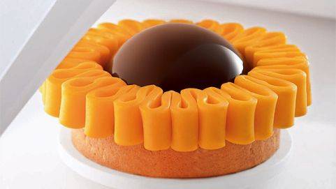 Décorer le haut du dôme de feuille d’or Cacao Barry |